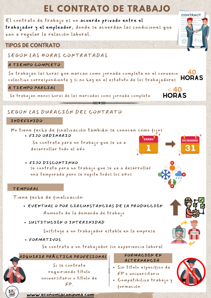 Una vez vista la distinta normativa que regula la relación laboral nos vamos a centrar en el contrato de trabajo y sus tipos.