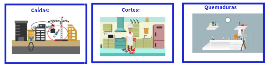 Accidentes de trabajo: que es una suceso repentino que cauda daño a las personas en su lugar de trabajo, entre los más comunes podemos hablar de las caídas, cortes o quemaduras: