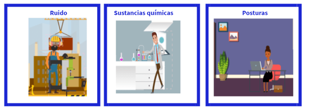 - Enfermedades profesionales o una alteración del estado de salud provocado por las circunstancias del trabajo a lo largo del tiempo. Las más comunes son las ocasionadas por el contacto continuo con el ruido o por el contacto continuo con sustancias químicas o por ejemplo las debidas a malas posturas.