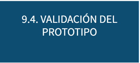 | ECE.4.D.2. Planificación, gestión y ejecución de un proyecto emprendedor. Del reto al prototipo. ECE.4.D.3. Desarrollo ágil de producto. ECE.4.D.4. Técnicas y herramientas de prototipado rápido. ECE.4.D.6. Presentación e introducción del prototipo en el entorno. Estrategias de difusión. ECE.4.D.7. Validación y testado de prototipos. Valoración del proceso de trabajo. Innovación ágil. ECE.4.D.8. El usuario como destinatario final del prototipo. La toma de decisiones de los usuarios. El usuario como consumidor. Derechos y obligaciones de los consumidores. ECE.4.D.9. Derechos sobre el prototipo: la propiedad intelectual e industrial. |
