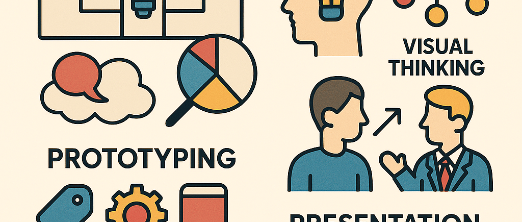 A partir de ahí, llega el momento de crear e innovar. Trabajamos cómo generar muchas ideas (fase divergente) y cómo seleccionar las mejores (fase convergente), apoyándonos en dinámicas creativas y en herramientas visuales como el Visual Thinking, que facilitan organizar y comunicar ideas de forma clara y atractiva. También se introduce el prototipado, es decir, crear versiones simples del producto o servicio para comprobar si realmente funciona y si aporta valor a las personas.